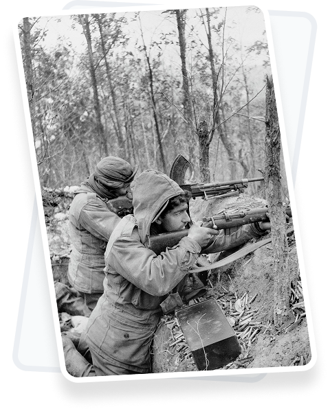 After a series of brutal encounter battles, the Paratroopers consolidated on the isolated Naga village of Sangshak high in the Manipur hills. Holding out against an aggressive and determined enemy, the Brigade fought off wave after wave of attacks in bloody hand-to hand fighting. With shortages of ammunition and supplies and casualties mounting, the defenders held on for a critical week before fighting their way out through the mountainous terrain, back to British lines.