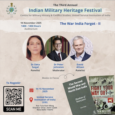Join David Allison at the Third Annual Indian Military Heritage Festival, taking place 14–15 November 2025 at the United Service Institution of India (USI), New Delhi. This international forum brings